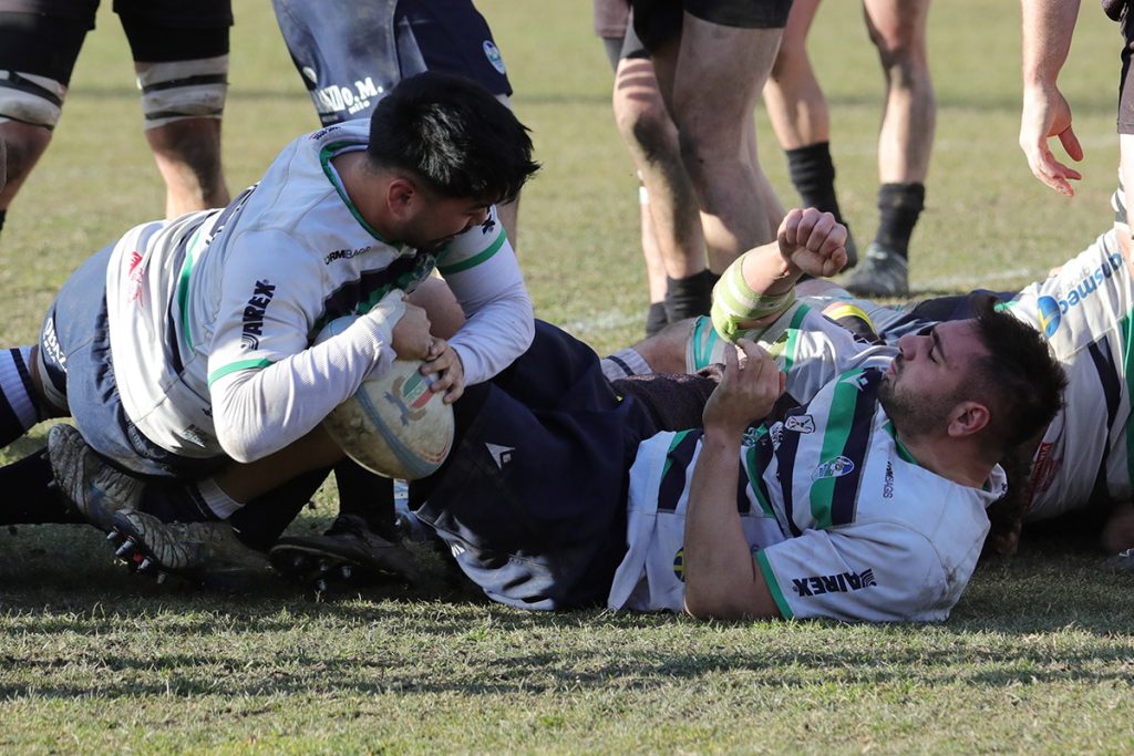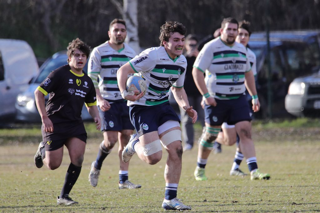 I biancoverdeblù approcciano il match nel migliore dei modi e mettono subito la sfida in discesa grazie a due mete in pochi minuti. Al 7’ Mazzi cambia il versante di gioco, il suo calcio non viene raccolto dalla retroguardia valdostana e ad approfittarne è Traversi, poi 4 minuti più tardi è Macculi a trovare la meta finalizzando una bella azione alla mano. Al 23’ un errore in attacco condanna il Giacobazzi: i biancoverdeblù muovono l’ovale dentro la 22, l’estremo valdostano Kelly intercetta e con un’azione solitaria firma la prima meta dei padroni di casa. L’episodio non cambia l’inerzia del match, che resta saldamente favorevole al Giacobazzi. E infatti 5 minuti più tardi arriva la terza meta: la mischia prova a passare sotto i pali, Righi Riva – col numero 9 sulle spalle – raccoglie l’ovale, finta di aprire a sinistra e trova lo spiraglio nelle maglie dello Stade. Al 33’ ancora l’estremo Kelly accorcia le distanze, ma nel finale di frazione la mischia di Modena mostra i muscoli e con Flores firma il poker che vale il bonus mete prima del riposo. Carlo Mazzi non sbaglia la trasformazione e si cambia campo sul 24-12.