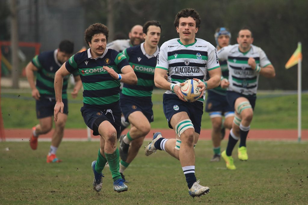 Nel XV di partenza di rivede Tomaso Bergonzini in terza linea, dove per la prima volta in stagione trova una maglia da titolare anche Daniel Covi. Nel primo tempo Modena soffre il dinamismo di Cus Milano, che conferma le sue abilità nel gioco alla mano e dopo 5 minuti trova il vantaggio con la meta segnata sotto i pali da Borzone e trasformata dallo stesso numero 12. Al 9’ il Modena sceglie i pali, ma Mazzi fallisce l’occasione dalla piazzola. Al minuto 16 arriva la seconda meta di giornata dei padroni di casa con Cederna che sposta il punteggio parziale sul 12-0. Dopo una prima parte di gara lenta e prevedibile, il Giacobazzi reagisce e inizia a conquistare terreno, arrivando a bersaglio alla prima vera occasione con Covi. Alla trasformazione va Mazzi, che non sbaglia e fa 12-7. La marcatura non inverte il trend: negli ultimi 10 minuti della prima frazione sono ancora i milanesi a prendere in mano il gioco e nel finale trovano il tris con il migliore in campo Borzone.